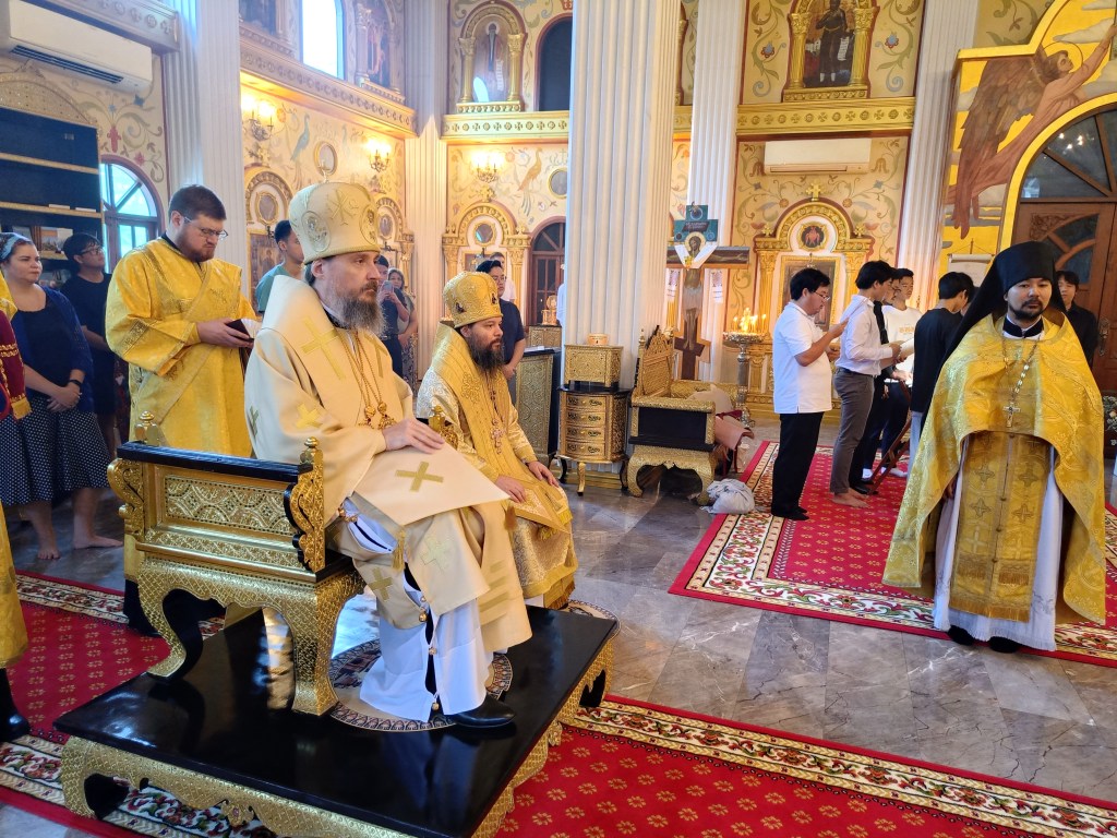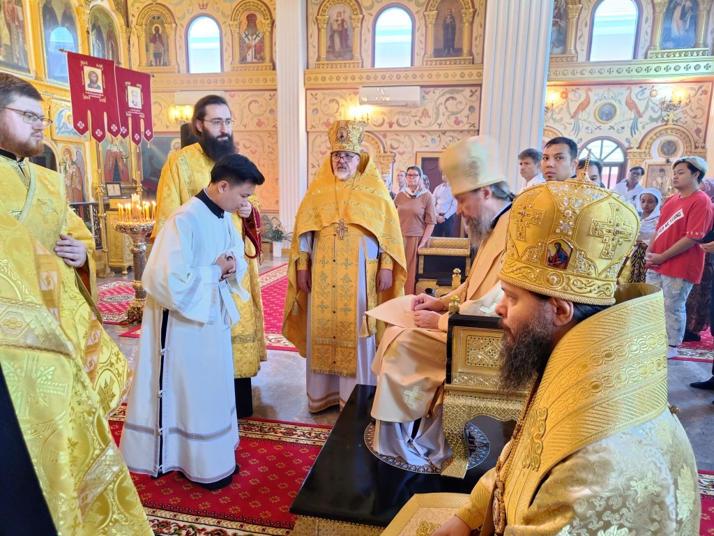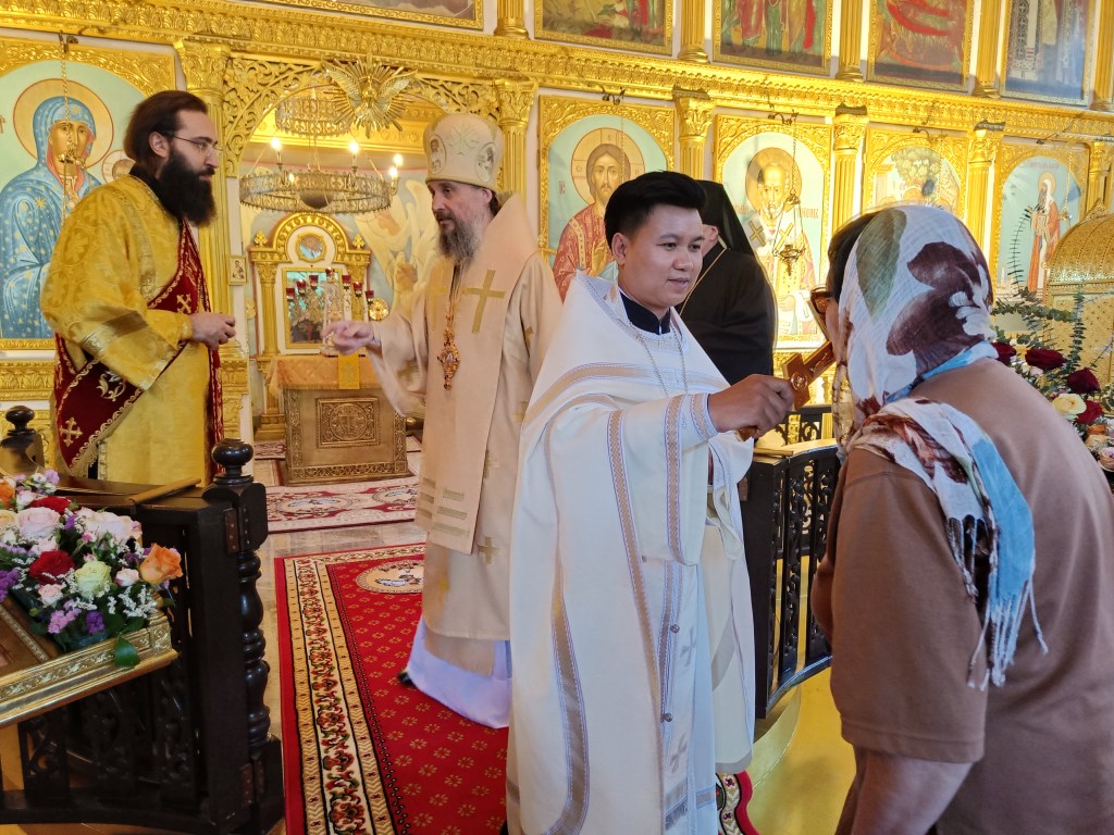 По окончании богослужения архипастырь поздравил всех с праздником и сказал напутственные слова новому священнику Таиландской епархии иерею Вадиму.