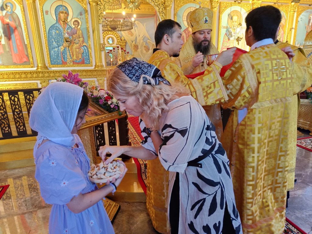 Con-celebrating with His Eminence were: H.G. Bishop Pitirim of Jakarta, Vicar of the Diocese of Singapore; Archimandrite Oleg Cherepanin, Secretary of the Diocese of Thailand; Hieromonk Paisiy Ipate, dean of St. Nicholas Cathedral in Bangkok; Hieromonk Alexander Vashchenko, rector of the Holy Royal Martyrs church in Hua Hin; Hieromonk Micah Phiaxayavong, cleric of St. Nicholas Cathedral in Bangkok.