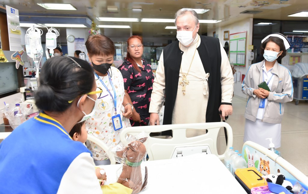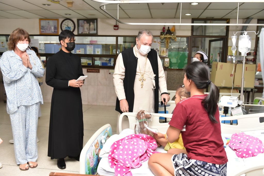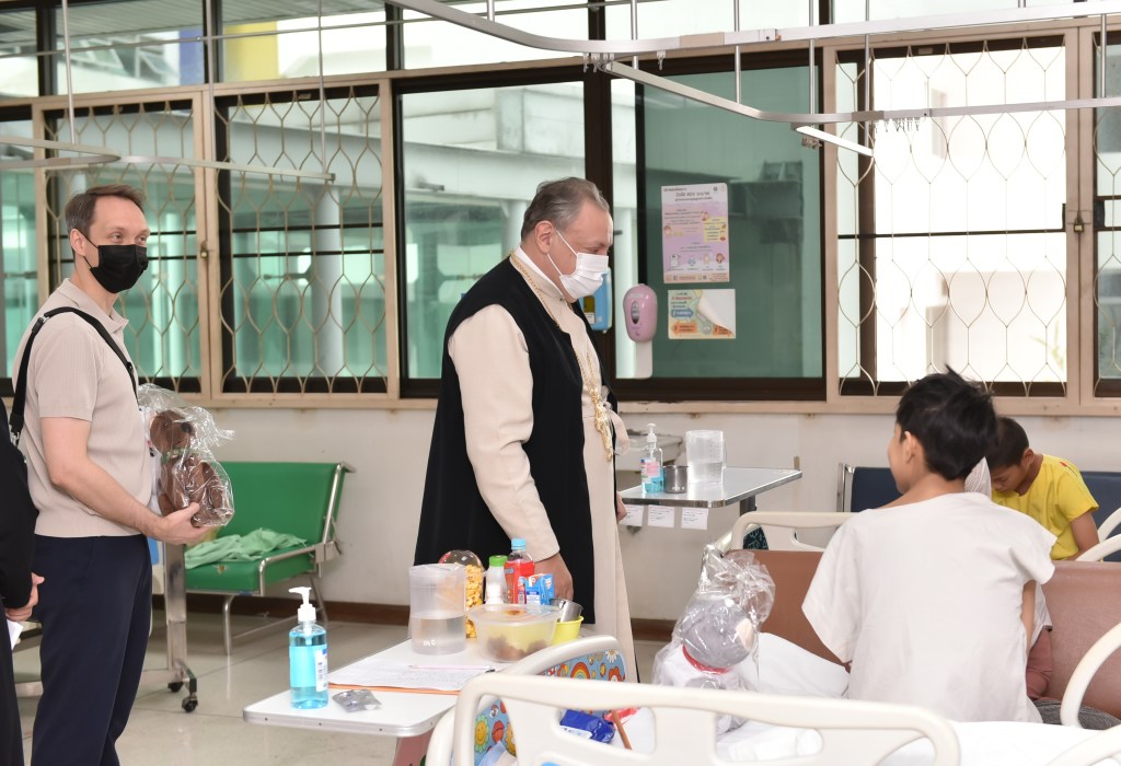 On December 16, 2024, with the blessing of His Eminence SERGIY, Metropolitan of Singapore and Southeast Asia, Patriarchal Exarch of Southeast Asia, temporary administrator of the Diocese of Thailand, the Secretary of the diocese, Archimandrite Oleg (Cherepanin), visited the oncology section of the Queen Sirikit National Institute of Child Health in Bangkok.