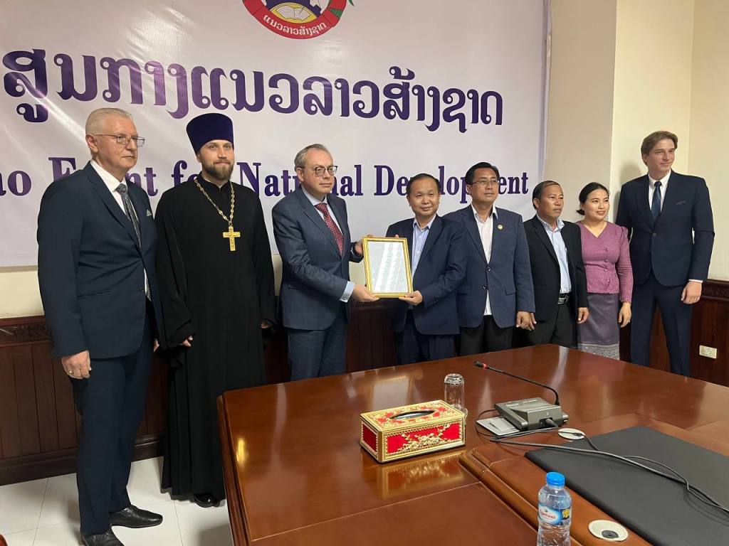 The official ceremony of handing over the document took place with the participation of the rector of the parish of the Saint Alexander Nevsky in Vientiane, priest Dmitry Lavrentyev, the head of the Rossotrudnichestvo Office in Laos Mr. Alexander Radkov, as well as representatives of the Embassy of the Russian Federation in Laos.