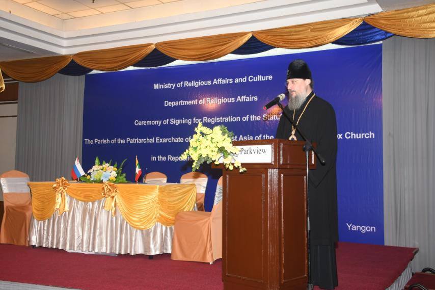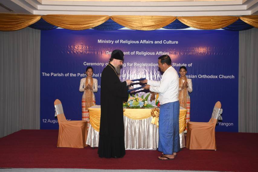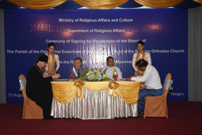 12 августа 2025 года, в г. Янгон, Республика Союз Мьянма, состоялась торжественная церемония подписания документа о регистрации Устава прихода в честь Преображения Господня Таиландской епархии Патриаршего Экзархата Юго-Восточной Азии Русской Православной Церкви.