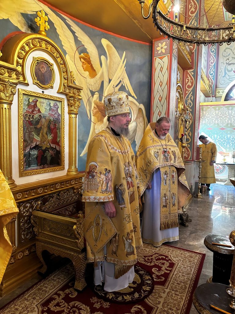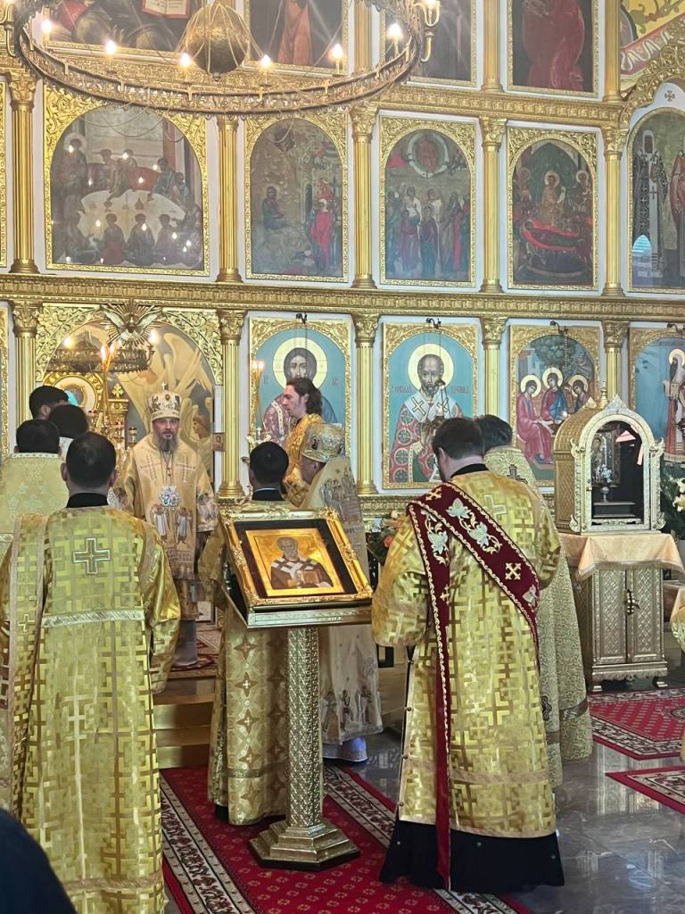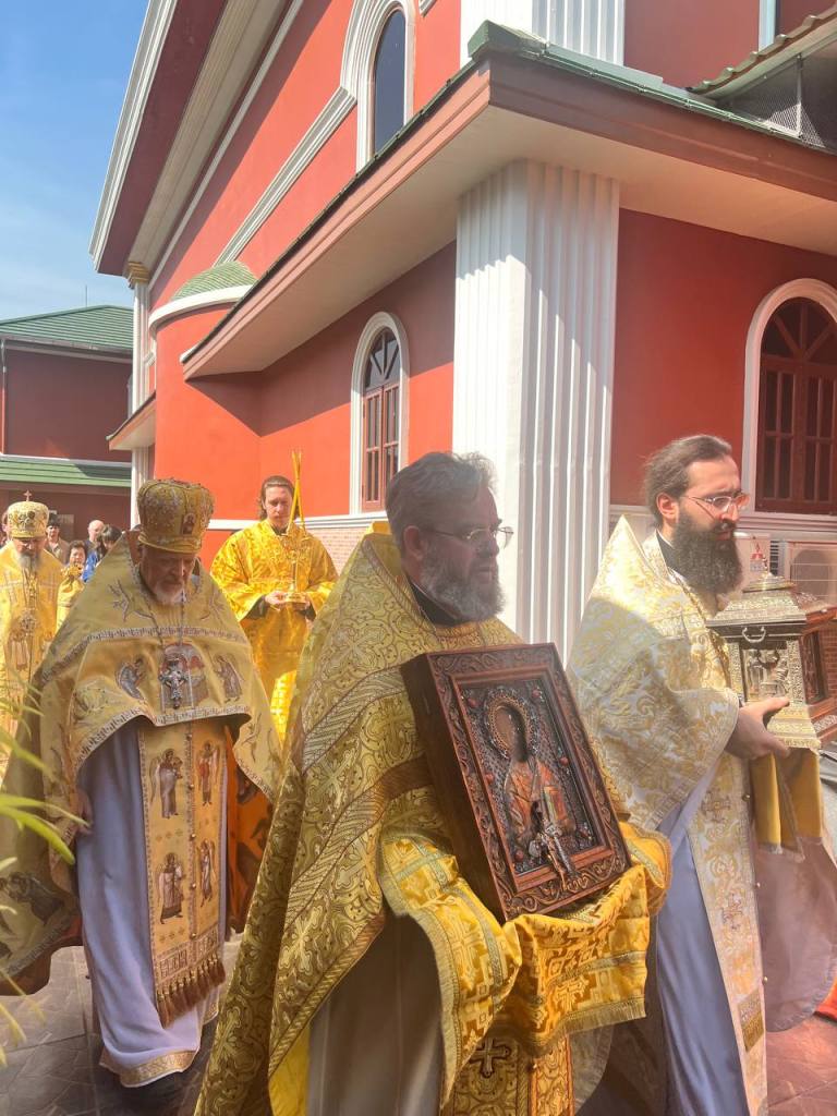Following the Divine Liturgy, the clergy, choir, and faithful took part in a procession around the cathedral, during which a fragment of the holy relics and a locally venerated icon of St. Nicholas the Wonderworker were carried.