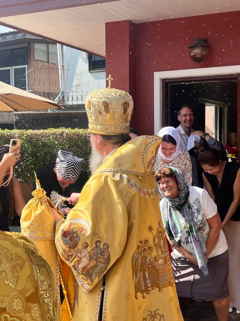 За богослужением в престольный праздник храма Его Высокопреосвященству сослужили: архимандрит Олег (Черепанин), настоятель Свято-Николаевского кафедрального собора, секретарь Таиландской епархии; иеромонах Ювеналий (Марущак), секретарь Патриаршего Экзархата Юго-Восточной Азии; иеромонах Паисий (Ипате), благочинный Свято-Николаевского кафедрального собора Бангкока.