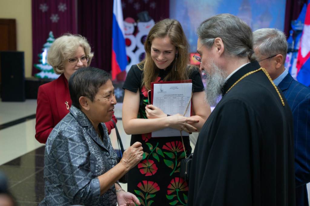 On December 24, 2025, the Patriarchal Exarch of Southeast Asia, Metropolitan Sergiy of Singapore and Southeast Asia, temporary administrator of the Diocese of Thailand, attended a meeting of graduates of higher education institutions of the USSR and Russia. The event was held at the Embassy of the Russian Federation in the Kingdom of Cambodia.
