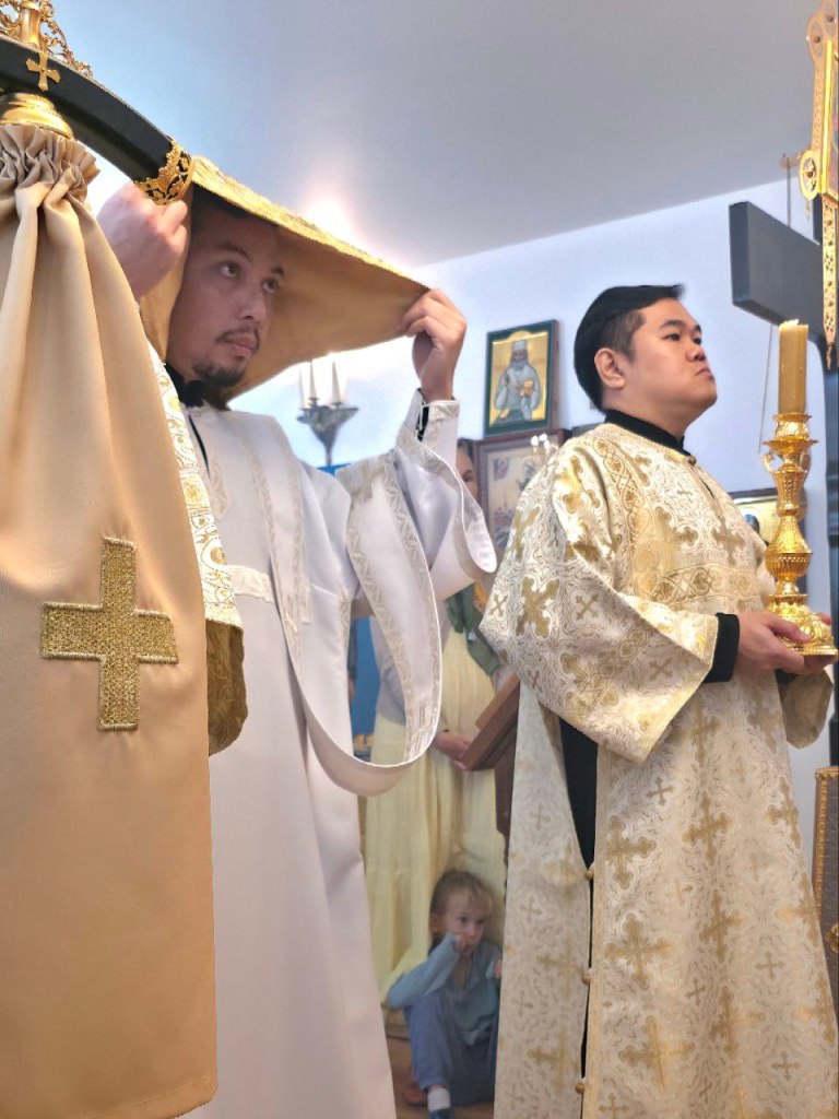 During the Divine Liturgy, Metropolitan Sergiy performed ordinations to the sacred orders. Deacon Victor Teoykoksoong, a cleric of St. Nicholas Cathedral in Bangkok, was ordained to the priesthood, and Subdeacon Nicholas Kebklang was ordained to the diaconate. Both newly ordained clergy will continue their ministry at St. Nicholas Cathedral in Bangkok.